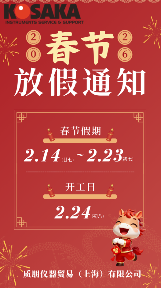感谢大家一直以来对质朋仪器贸易(上海)有限公司的信任与支持。农历丙午马年新春来临之际,公司依据国家放假通知精神,结合公司实际情况,安排春节假期如下,敬请知悉!