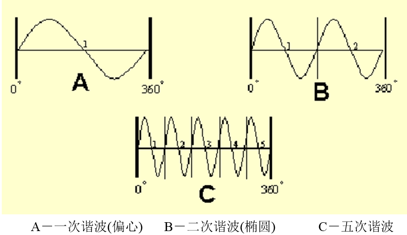 谐波的定义 轮廓图形可以用一傅立叶级数来表示。傅立叶定理表明任何周期的波形都可以用各正弦波分量之和表示。圆度轮廓谐波定义为每周的波动数。