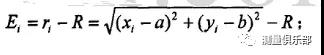 ,其中(a,b)为最小二乘圆的圆心,R为最小二乘圆的半径。采样点到最小二乘圆的径向偏差为: